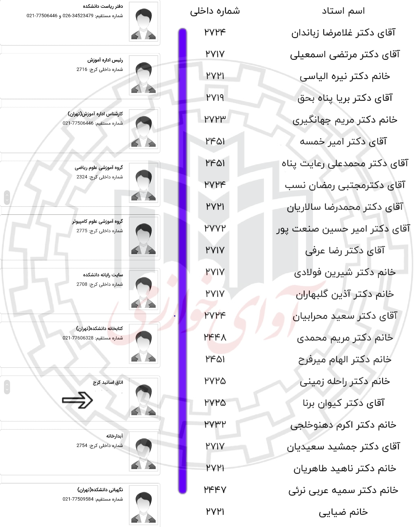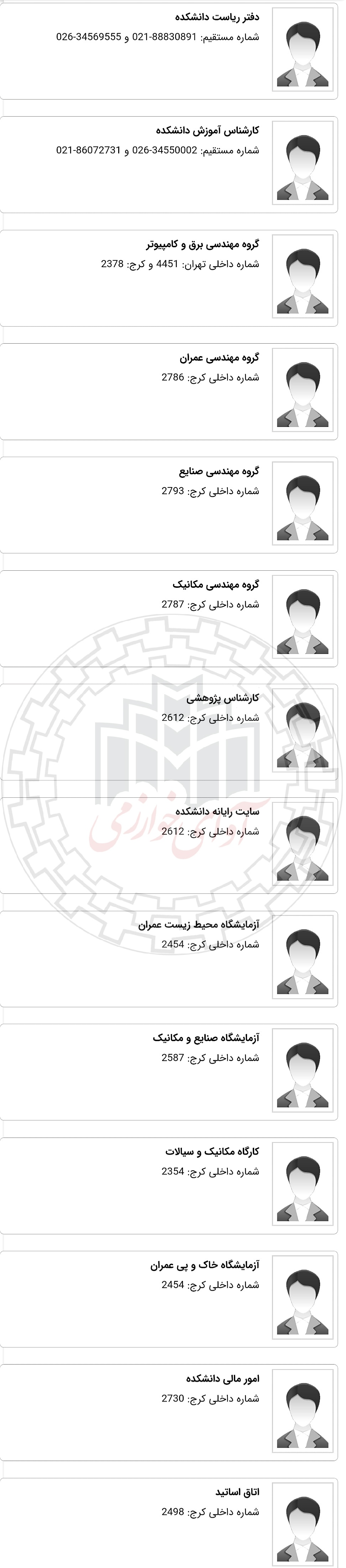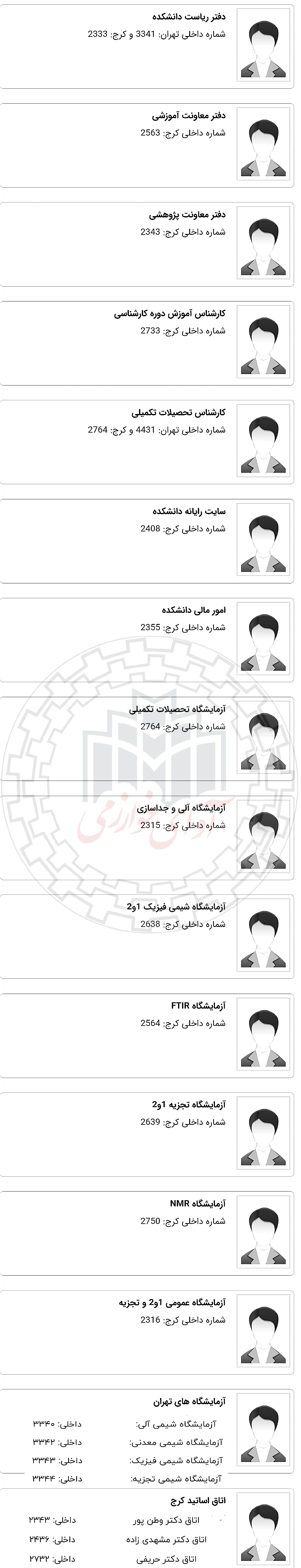💠 جهت شماره گيری مستقيم شماره های داخلی پردیس کرج، با شماره 34579600-026 تماس گرفته و سپس داخلی مورد نظر را شماره گیری نمایید.