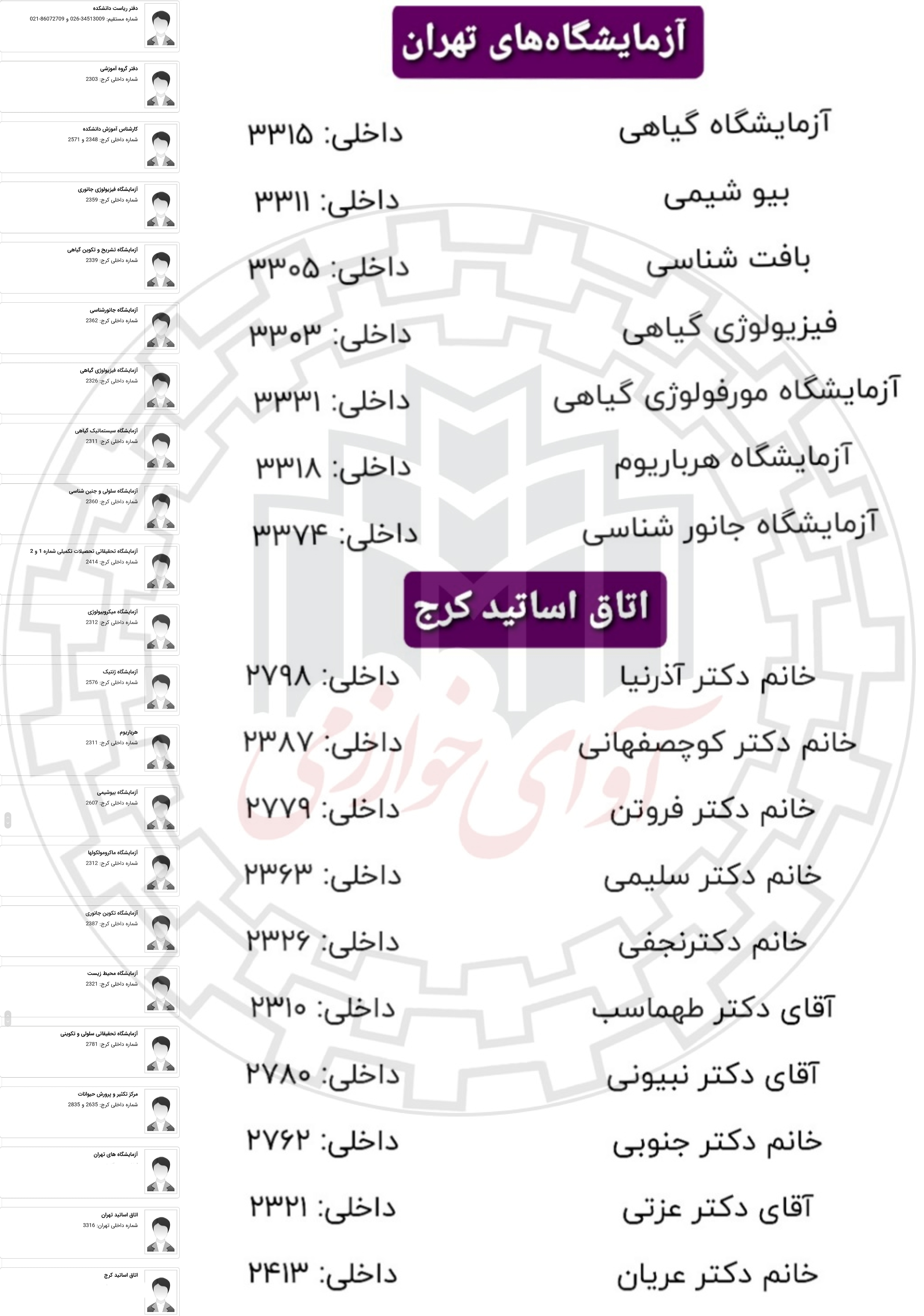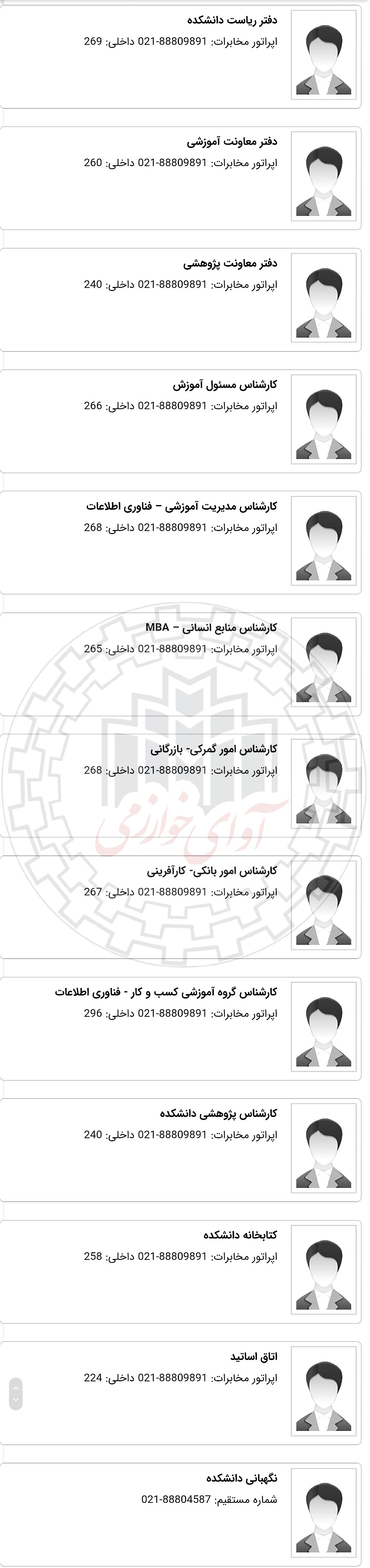 🔴 شماره تلفن دانشکده های دانشگاه خوارزمی: