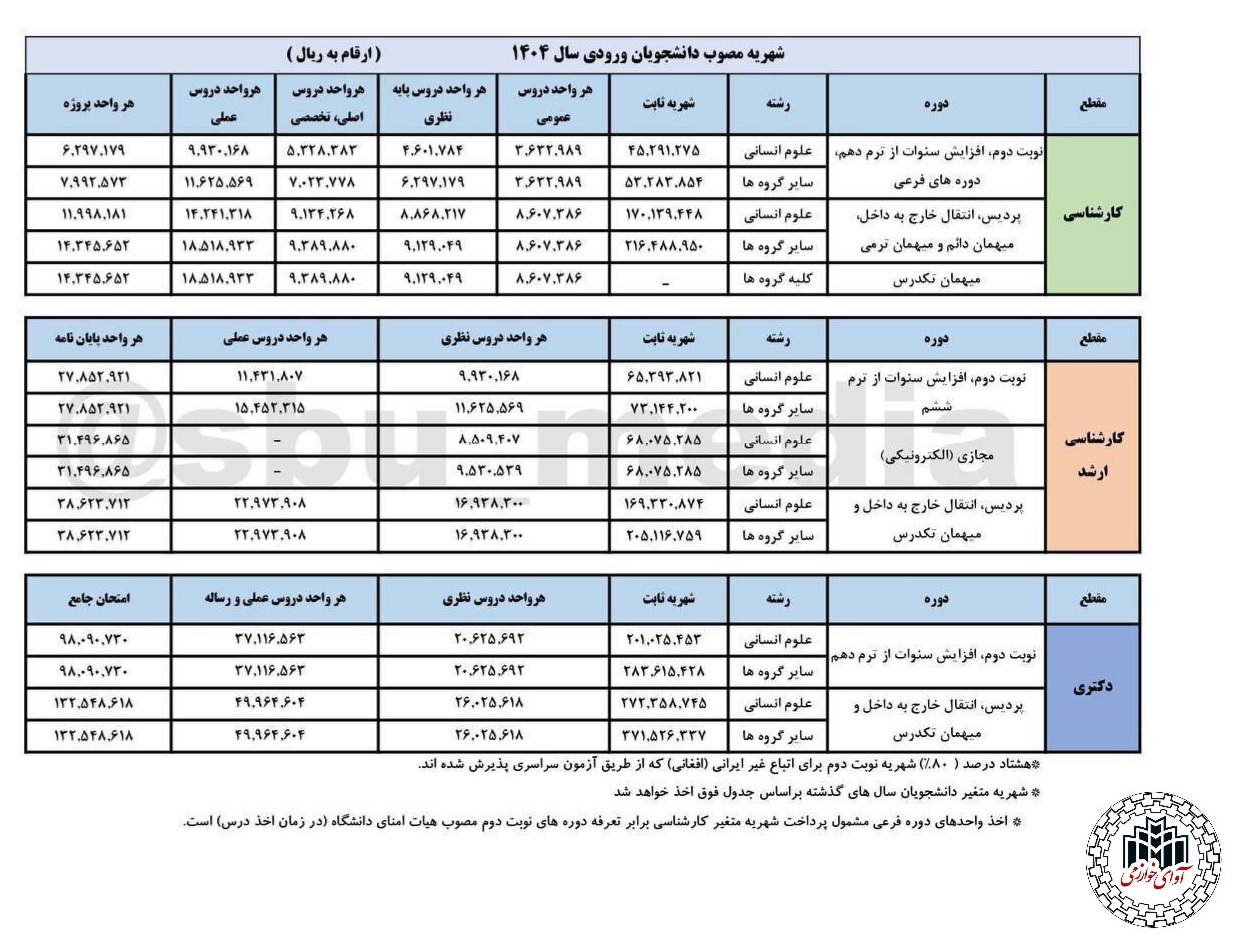 🔴 شهریه مصوب دانشجویان ورودی ۱۴۰۴ اعلام شد.